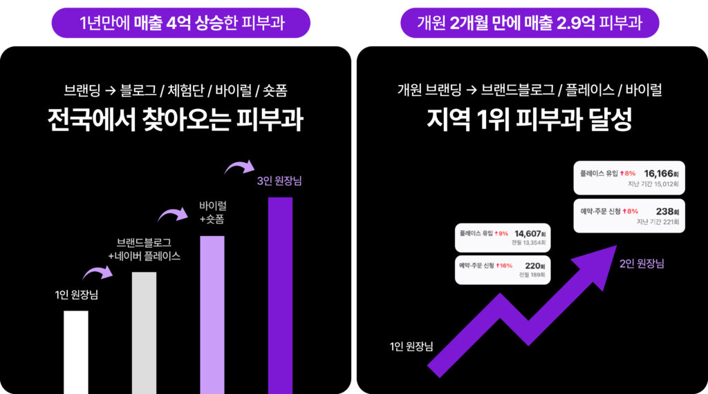 - B 피부과 : 1달 만에 매출 2배 증가